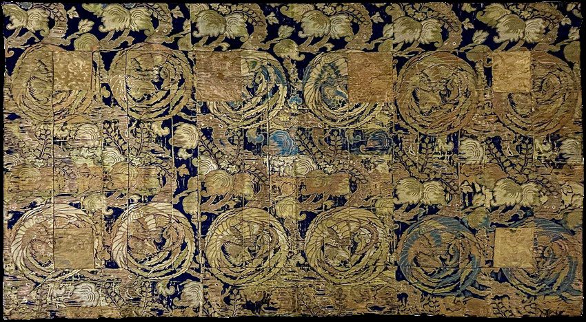 Das Flickwerk aus Brokatstoffen, aus dem dieser Umhang gearbeitet ist, spiegelt die Demut und Weltabgewandtheit buddhistischer Lebensweise wider. In ihrer symbolischen Bedeutung bildet die Aufteilung eines kesa vor allem den buddhistischen Kosmos ab.